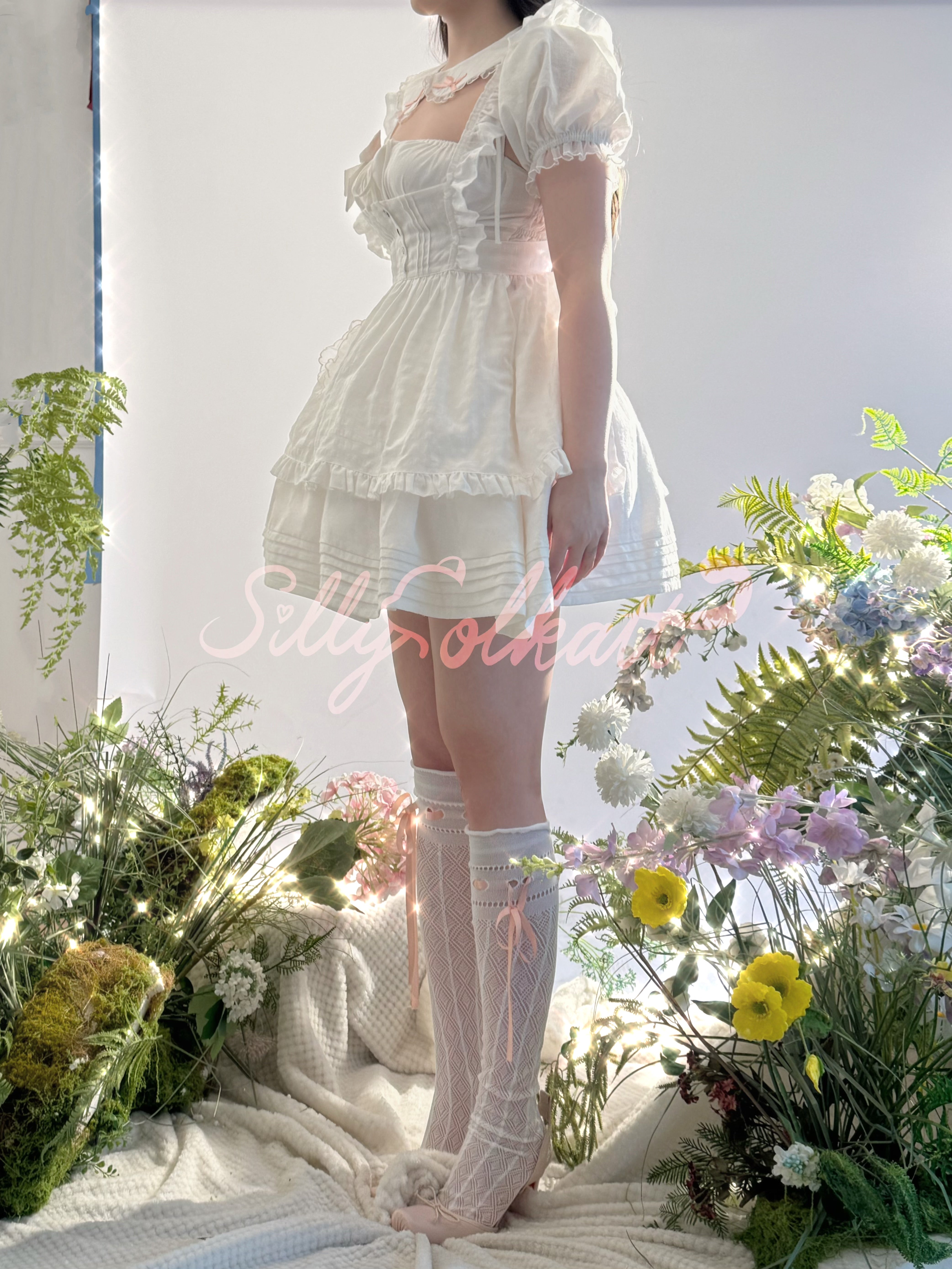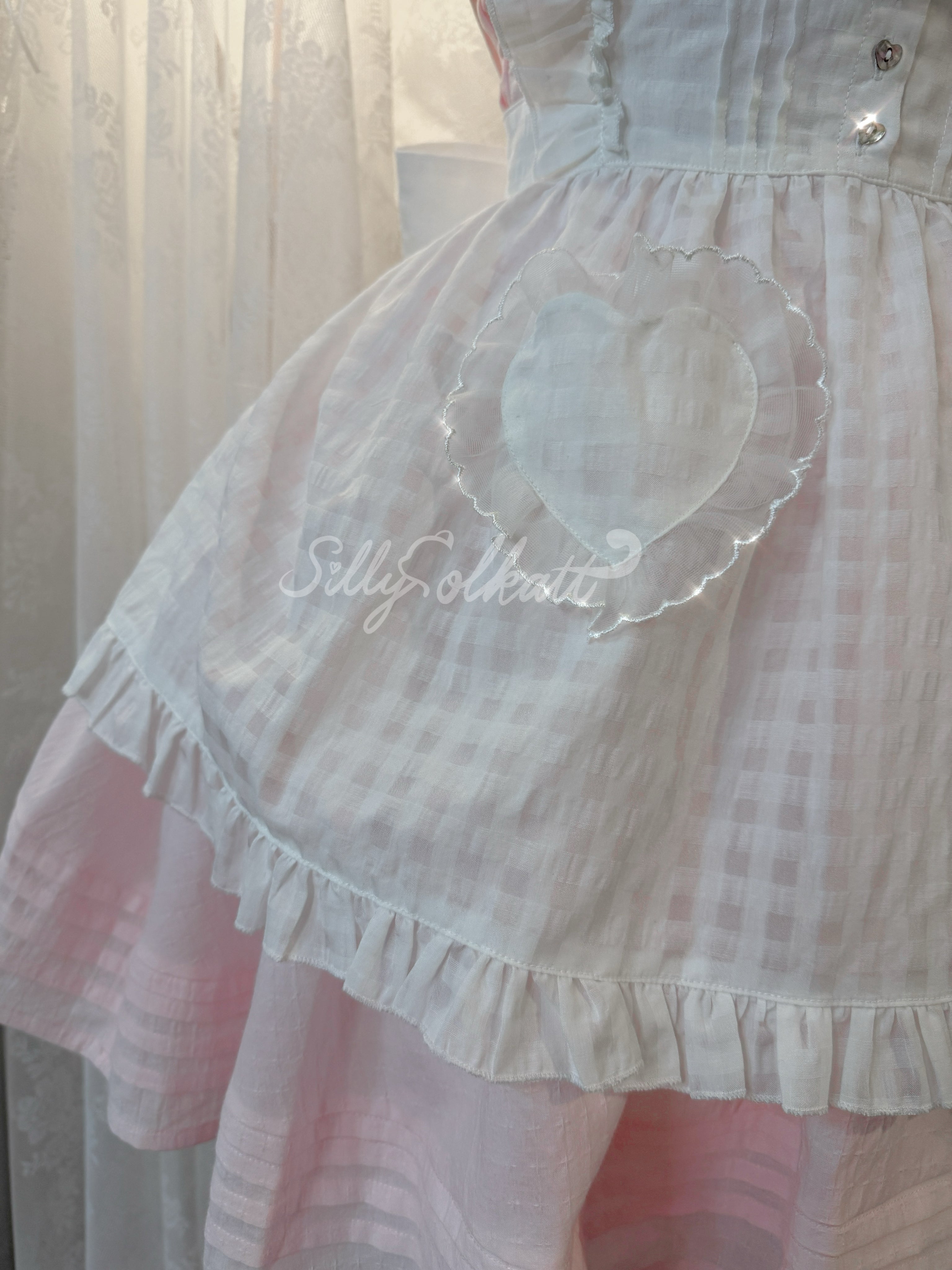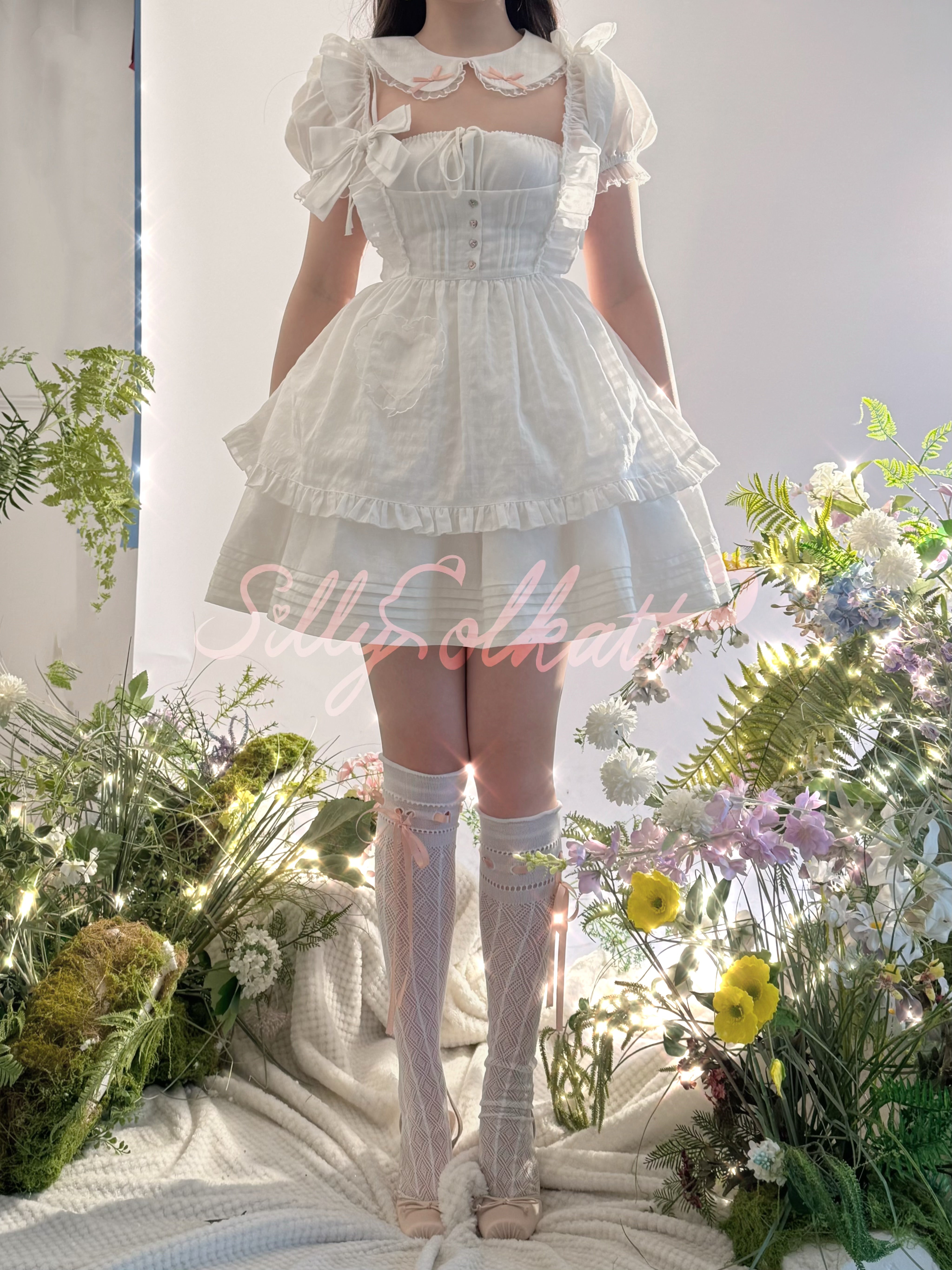 [Sold out forever — just here to be remembered ♡] Silly Solkatt Alice’s Angel Aura White Gingham Apron Set